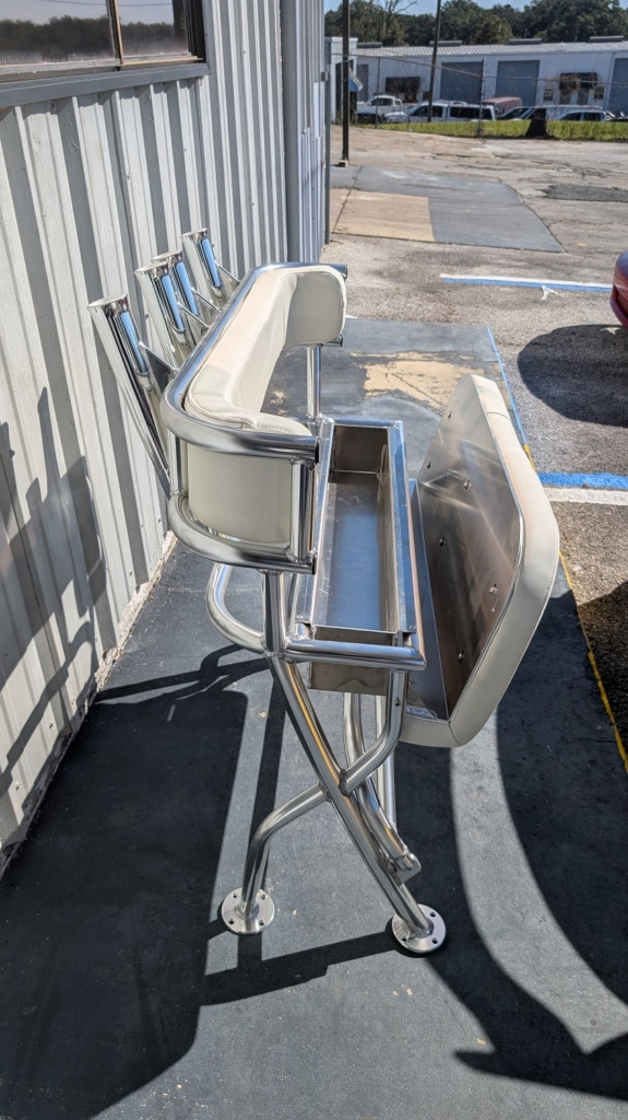 Having Fast Manufacturing Equipment And A Hard Working Staff Allows Us To Complete Your Custom Leaning Post & Custom Boat Seating Quickly And Get You Back On The Water!